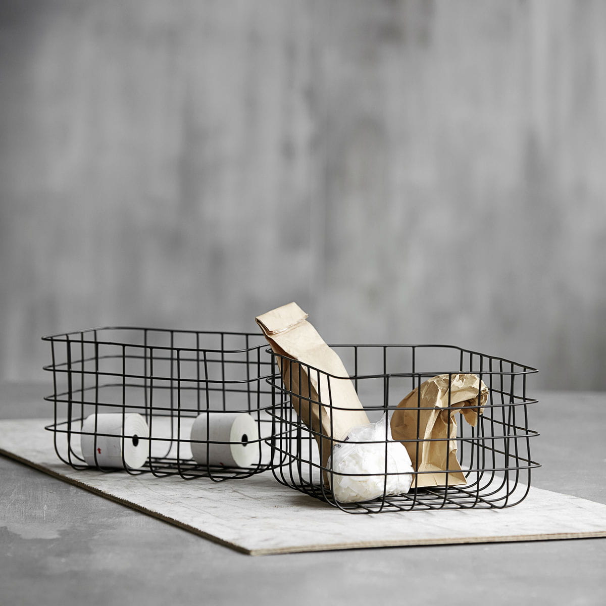 You do not need to hide everything away to create a clean style. The stunning SIMPLY wire baskets from House Doctor are a different take on visible storage solution that adds life and character to your home. The baskets come in a set of two different sizes. The wire baskets are made of iron, painted in a nice, black colour. Use these stylish baskets to transform your mess into a decorative item in your home. The baskets are perfect for storing small items in the hallway, office supplies in your home office or simply as a beautiful element in your bathroom.