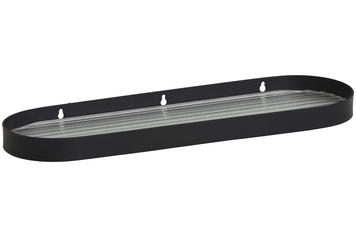 SOTRA shelf made of stainless steel with black finish and glass with grooves. Certified product for use in humid rooms. The classic design by combining black and glass makes the shelf suitable for a variety of bathroom colors.