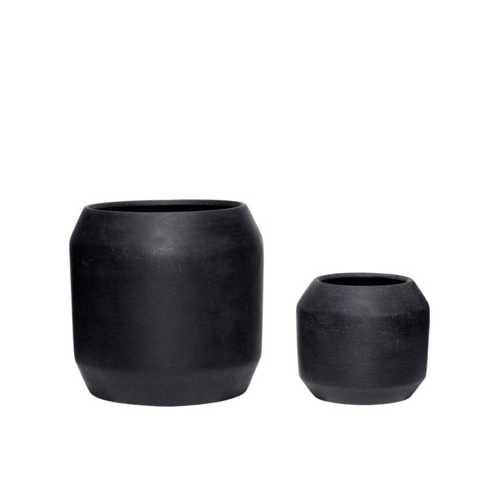 Set of 2 flower pots AMONG, black - Hübsch
