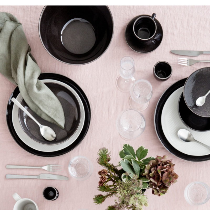 Piękna, najnowsza kolekcja ceramiki NORDIC COAL marki Broste Copenhagen. Produkty zostały wykonane z kamionki wykończonej w kolorze czarnym. Naczynia nadają pomieszczeniu elegancji. Chłodna tonacja naczyń wykończona została nieregularnym brzegiem w kolorze jasnego brązu.