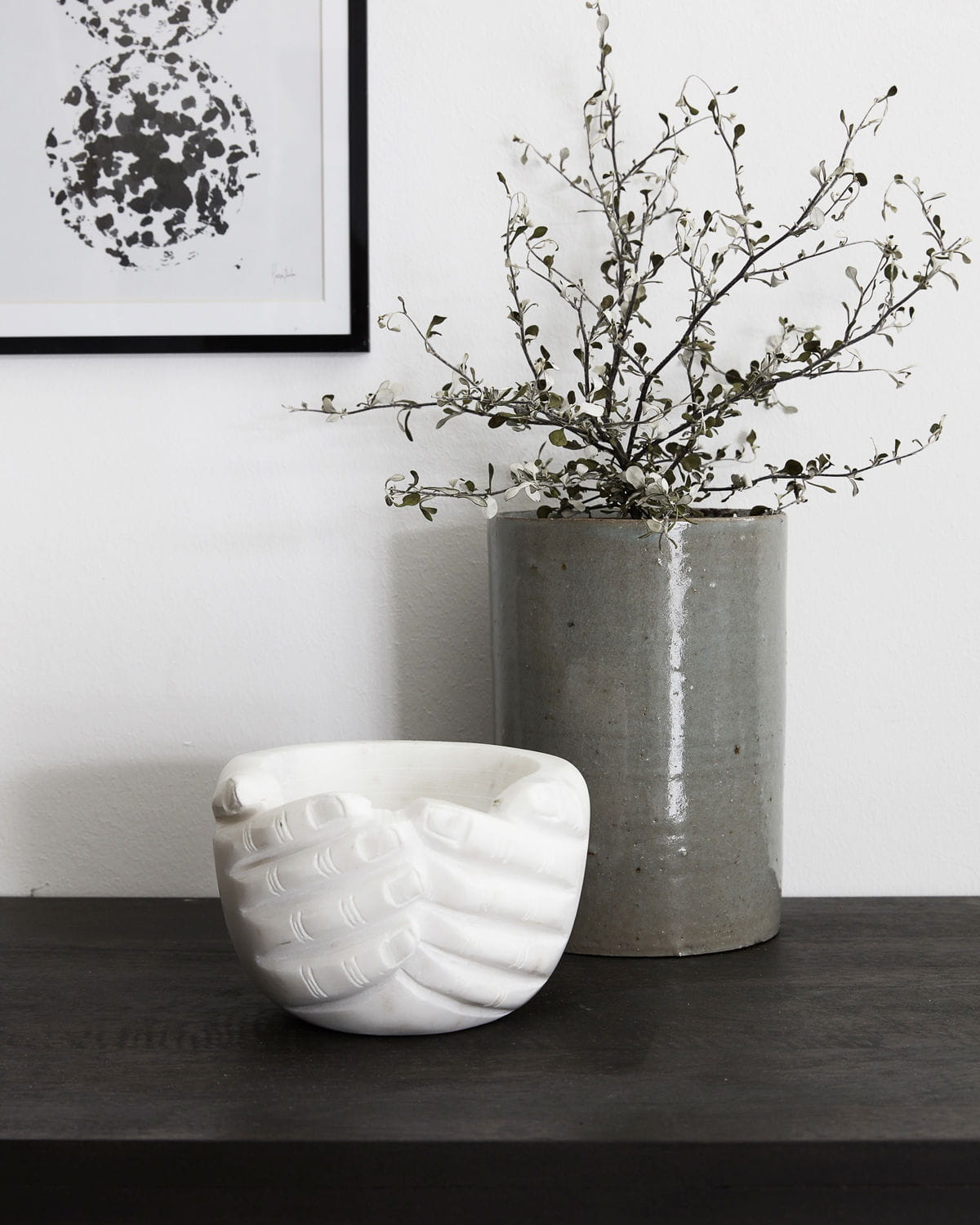 Hands from House Doctor is a beautiful and decorative bowl made of marble. Two hands form a bowl and make it look like they are embracing whatever you choose to put in it. This decoration makes the bowl unique. The bright color is perfect for creating a cozy and timeless atmosphere in your home. Use the bowl as a decorative element on a shelf or table. It is a beautiful element that will create a cozy and warm atmosphere.