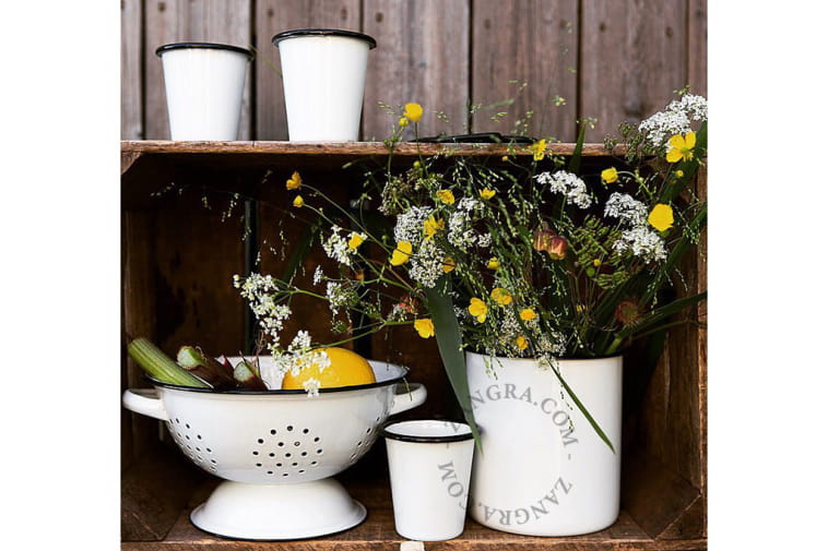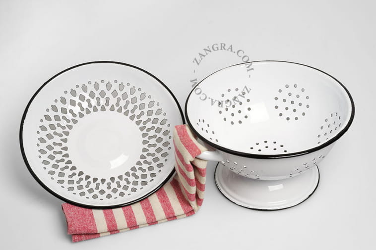 Give your table a retro touch with our collection of enamelware. Since the enamelling process is done by hand and not by machine, it is possible that the enamel will be applied to the unfinished casting of varying thickness, which may result in slight surface irregularities. Small black spots or pores may be visible. However, they are part of the typical appearance of enameled products. They do not affect corrosion protection.