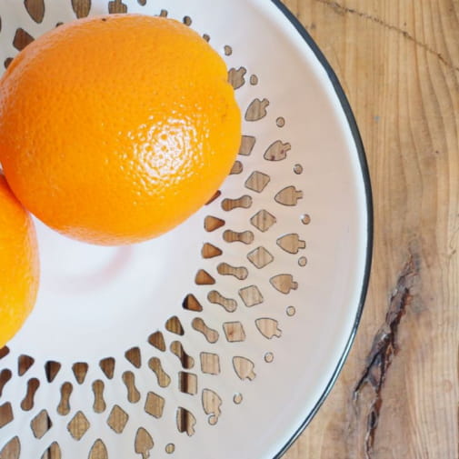 The Zangra brand tray is a unique home accessory. The vessel is made of enameled metal, which is very durable. The tray has holes that ensure proper air circulation and thus keep fruit and vegetables fresh for longer. It catches the eye, intrigues and gives the interior a unique character.