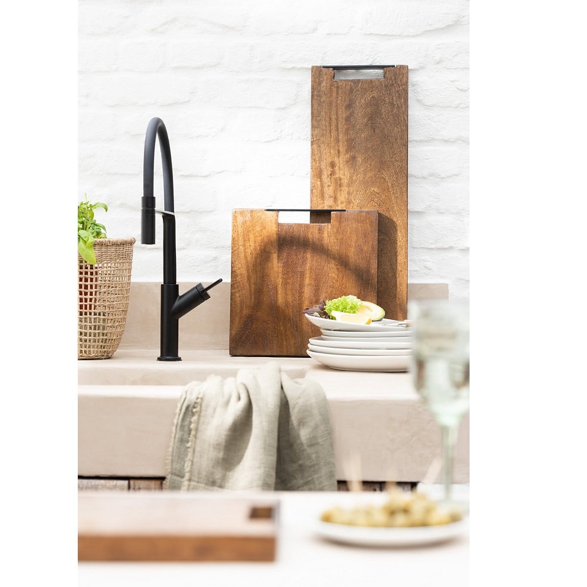 The MANITA cutting board by Jolipa is made of natural mango wood and has a decorative black handle. It will make the cheese and other side dishes look attractive. MANITA is a functional accent to your kitchen that is perfect for everyday use or for entertaining guests.