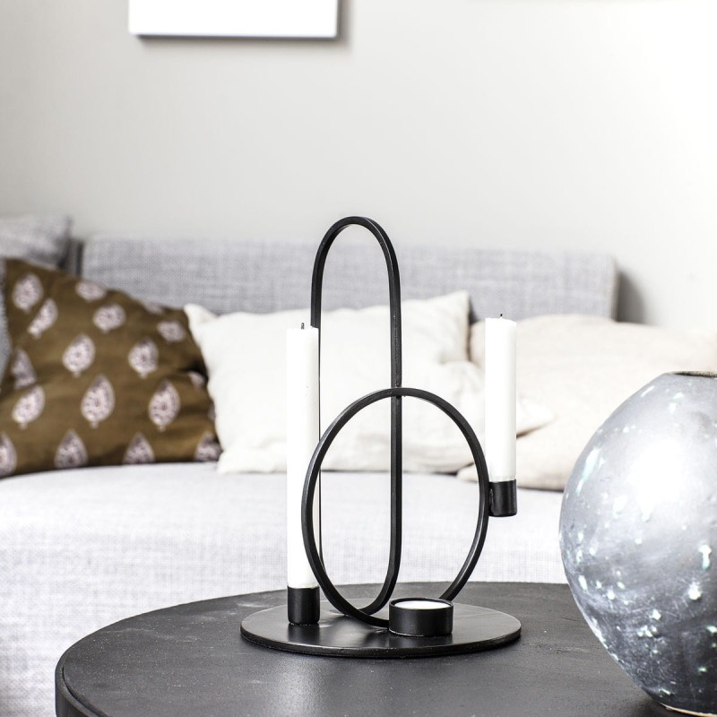 You can never have enough candle holders in the home! They spread a cosy and wonderful atmosphere in the room, while also adding a touch of warmth. Cirque from House Doctor is a beautiful and decorative candle holder with stunning, round shapes. The candle holder has enough space for two candles and a tea light at the same time, which gives this unique candle holder the ability to create a cosy atmosphere in your home. Cirque is black and it has a height of 30 cm. Suitable for candles measuring 4 cm in dia.