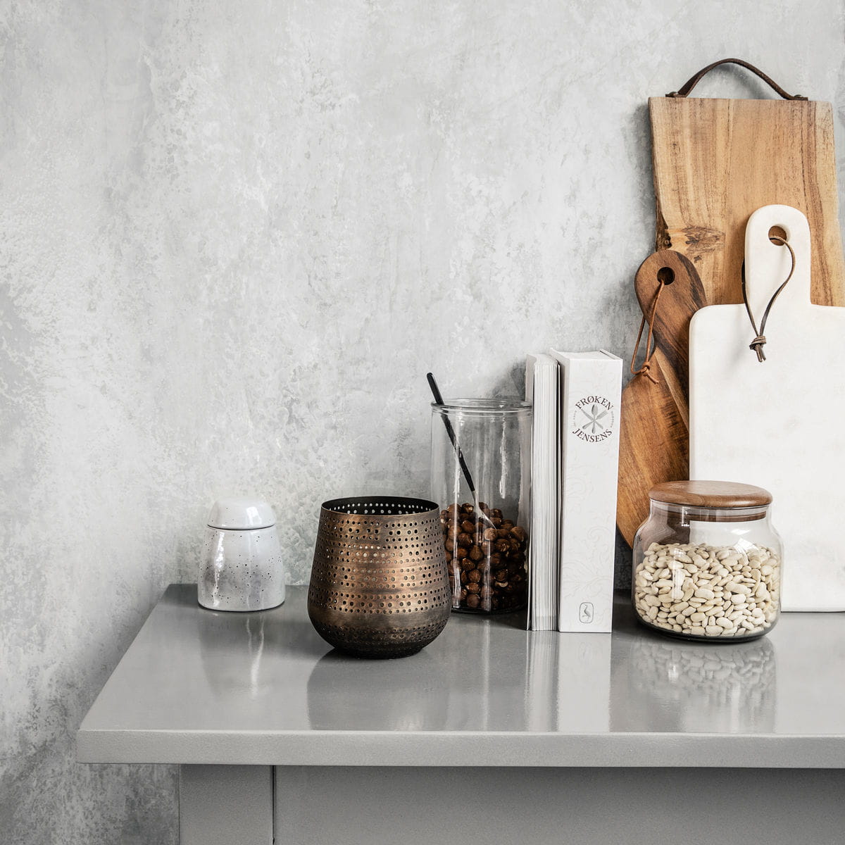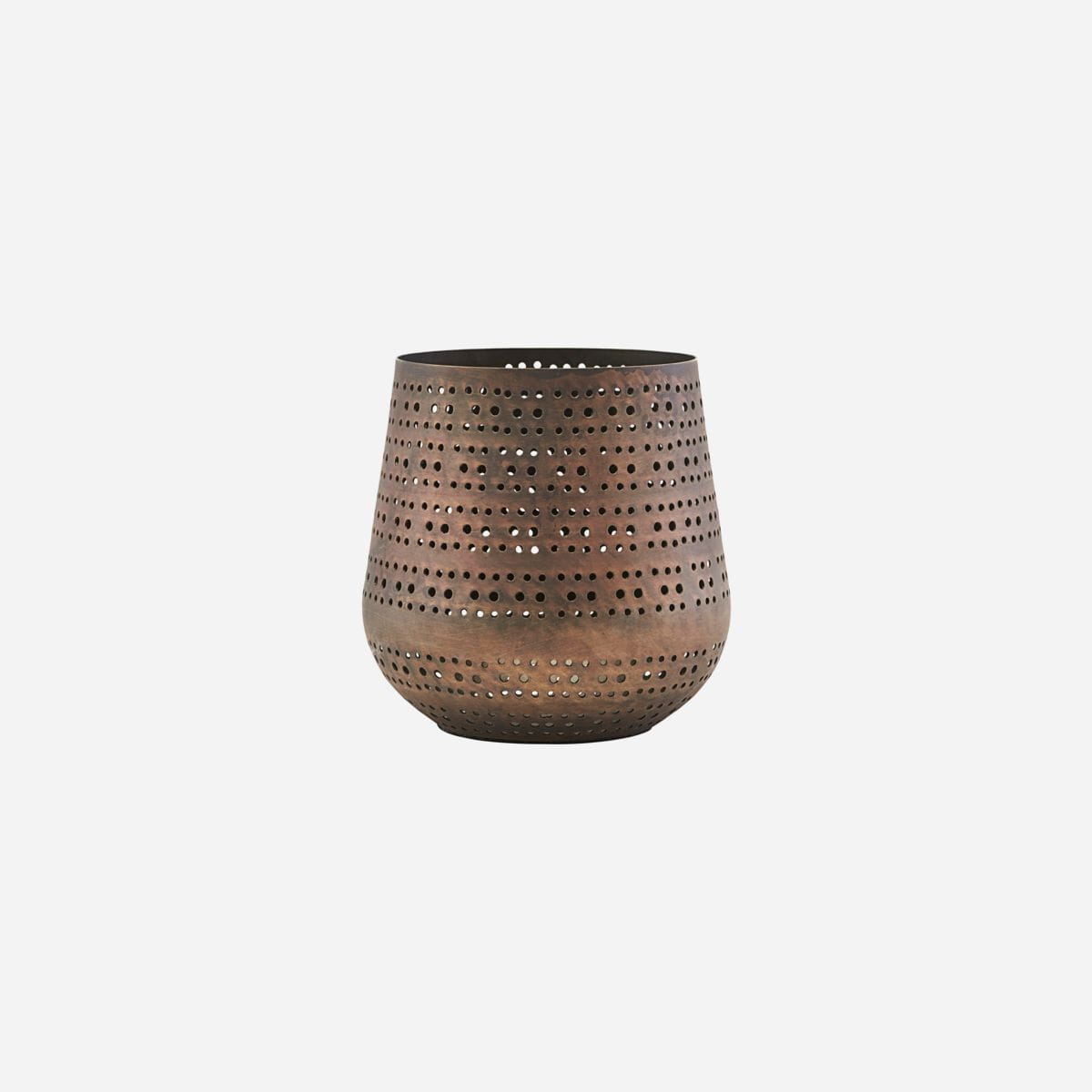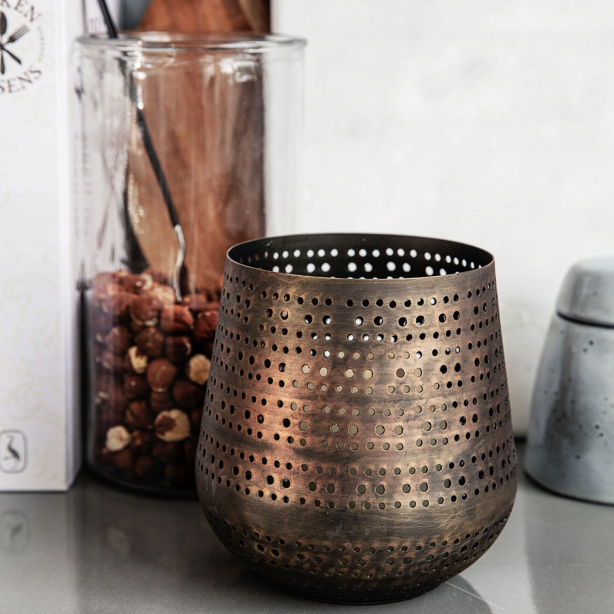 This beautiful candle holder from House Doctor is called PERFO. It has a round shape with a pattern full of holes that gives exceptional light. Made of steel, it has a copper finish that gives it an exclusive look. Please note that color and finish may vary.