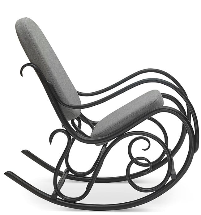 The vintage-inspired rocking chair by Fameg will be perfect for moments of relaxation. Very comfortable thanks to the soft fabric cover and ergonomic armrests. Characteristic decorations made of wooden "swirls" - bends, make this rocking chair a desirable element of any interior.
