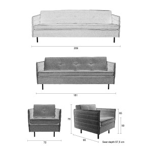 Our Zuiver design team, once again, really outdid themselves by designing Sofa Jaey. This very feminine lounge set can just as easily stand up to masculine interiors, simply by choosing another fabric. Jaey comes in various sizes to accommodate every lounge area. Go ahead and mix and match sizes and fabric, in other words: have fun with Jaey!