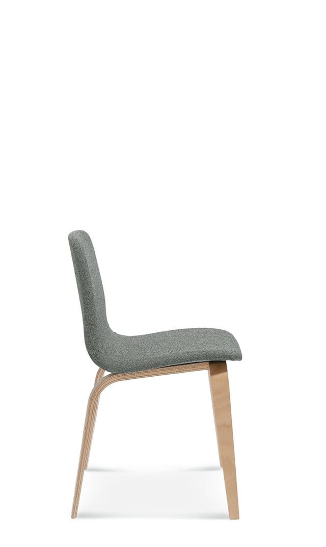 A series of seats designed for contemporary restaurants and food courts, will also fit into any modern home interior. The A-1802/1 fully upholstered chairs are a combination of modern, elegant design with advanced wood bending technology. The change in thickness used in the legs of the chair adds lightness, revealing thin edges, while ensuring a strong structure. The soft, flowing lines of the seat give it a contemporary and friendly feel. Each piece of furniture is made at the customer's special request.