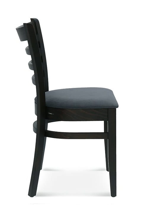The wooden Fameg chair with an upholstered seat is a modern, classic piece of furniture designed to fit into any kitchen, hotel or restaurant room. The backrest is made of horizontal, flat wooden slats, thanks to which the design of the form has become more modern. The Bistro.2 chair has a solid beech base in the color you choose!
