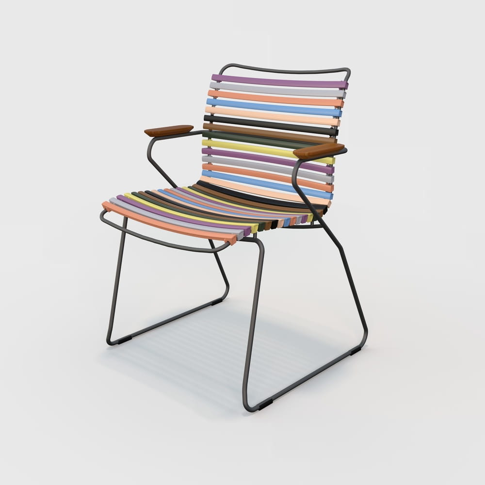 The CLICK chair is simple in its form, but very well thought-out in terms of ergonomics. The seat is perfectly adapted to the body. The individual rungs are detachable, so you can freely change the arrangement around the table, mix colors and create your own unique set. The CLICK garden chair is available in two variants - with or without armrests. CLICK chairs are stackable.