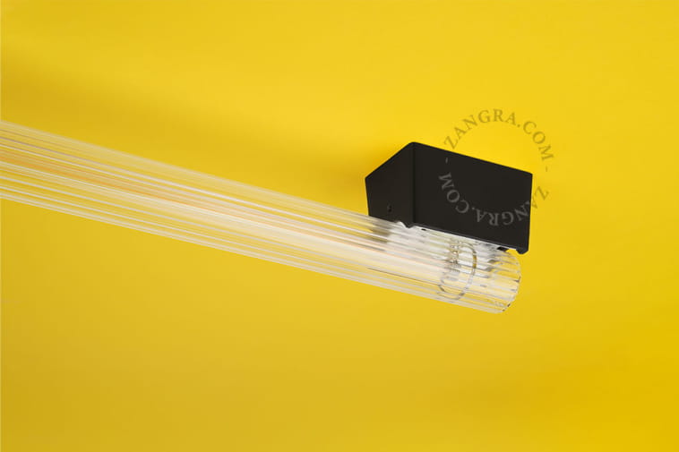 Black metal CHARLINE lamp holder with fluorescent lamp, transparent ribbed glass, 100 cm - Zangra