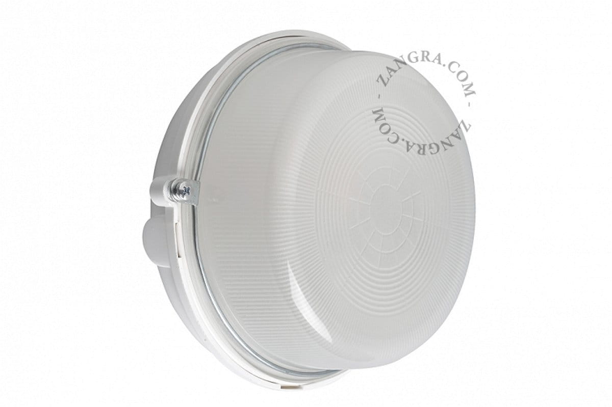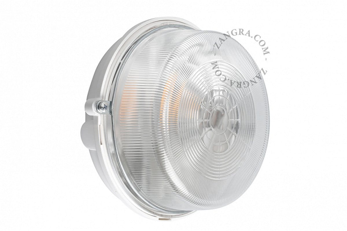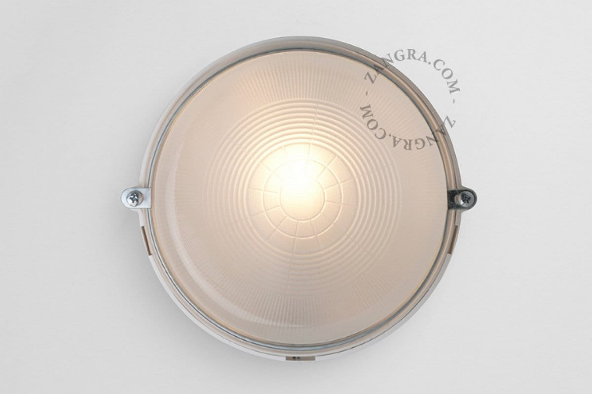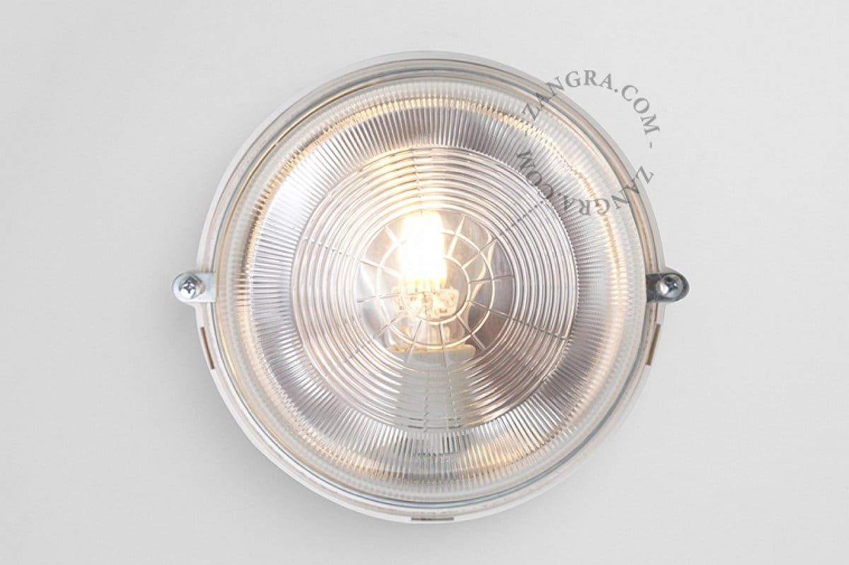 The round ribbed glass Bakelite BULKHEAD lamp functions as both a wall lamp and a ceiling lamp. This classic Zangra lamp simply fits anywhere, allowing installation in even the smallest places. And lamp replacement is easy to do with just two screws.