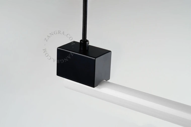 Black linear pendant lamp BRUNO LED bulb 100 cm - opal glass - Zangra
