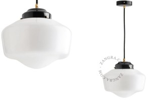 The vintage design takes its inspiration from traditional school lamps from the 1920s and perfectly combines the velvety structure of the glass with the shiny brass look. Thanks to their clean, functional lines and practical, light-diffusing lampshades, school lamps were a popular choice wherever good ambient lighting was needed. These days, school-style appliances are still appreciated for their timeless looks and are a good way to add retro flair to your kitchen, bathroom, and other lightless parts of your home.