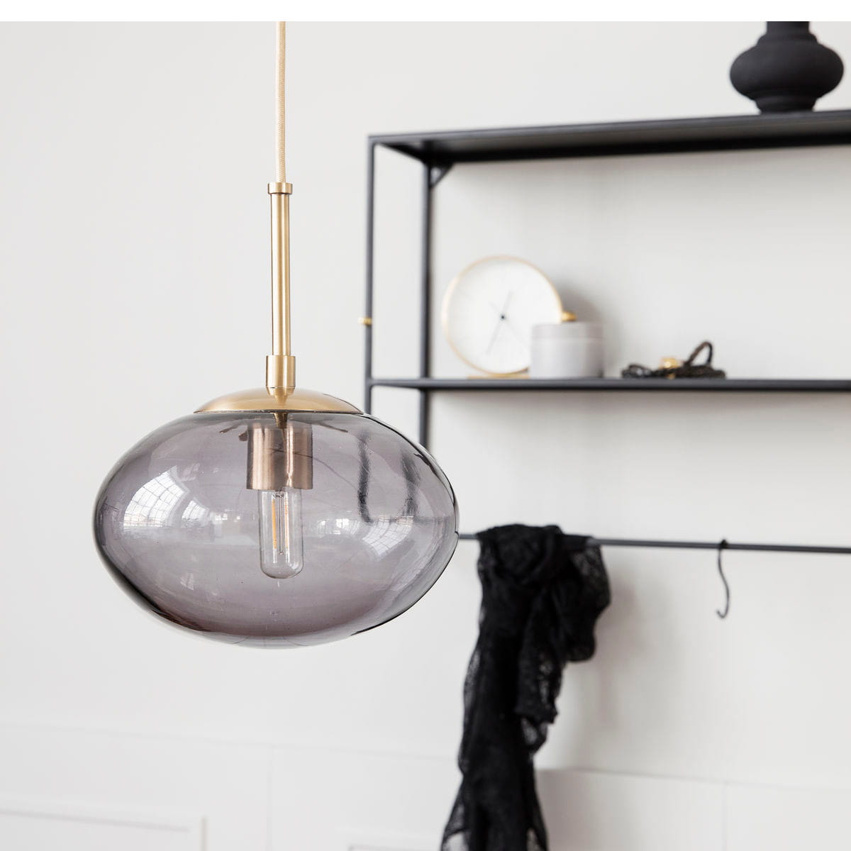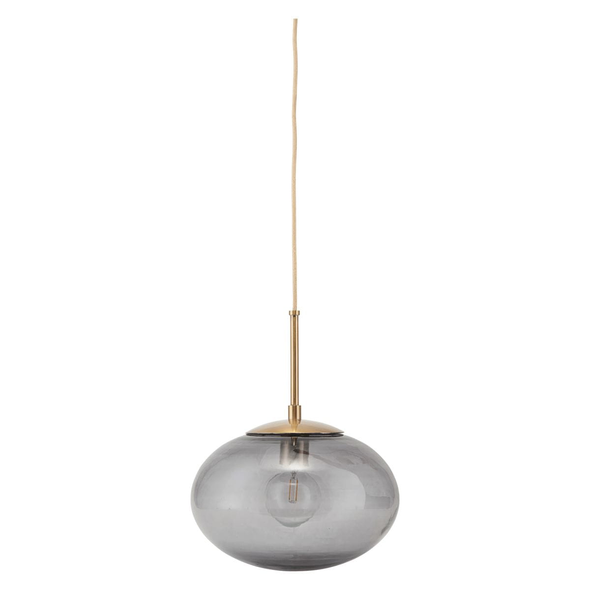 With a handsome light source, you can create a cosy atmosphere in your home while also using it as a decorative item. This stunning pendant lamp from House Doctor is called OPAL and is designed with a sophisticated and exclusive idea in mind. The combination of the grey smoky coloured lamp shade and the brass coloured metal bar makes for a beautiful lamp that becomes an instant eye-catching item in the home. The lamp has a diameter of 22 cm, a height of 17 cm, together with a 3 m cord. Hang it above your dining table, kitchen island or use it as a cosy light source in the living room.