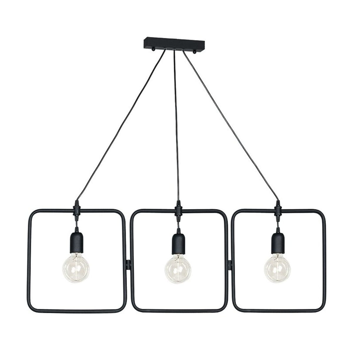 The pendant lamp THREE SQUARES was made of steel. This lamp consists of 3 metal squares. In the center of each square is a light bulb. The set does not contain light bulbs. The lamp has a metal roof liner. The lamp fits perfectly to hang over the table.