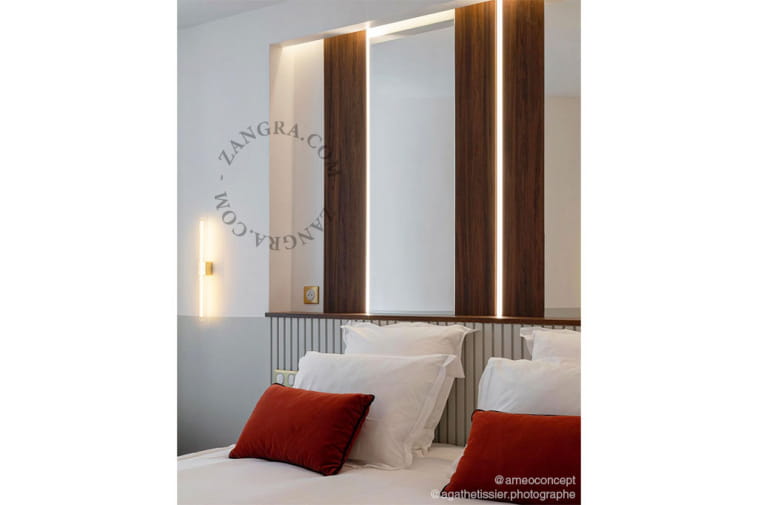 The minimalist bob.030.gs wall lamp from Zangra. The lamp consists of two elements: a base and an elongated LED bulb in two sizes: 30 cm and 50 cm. Ideal for illuminating a bathroom, hallway, or stairwell. The tube-shaped bulb provides a soft, warm glow.