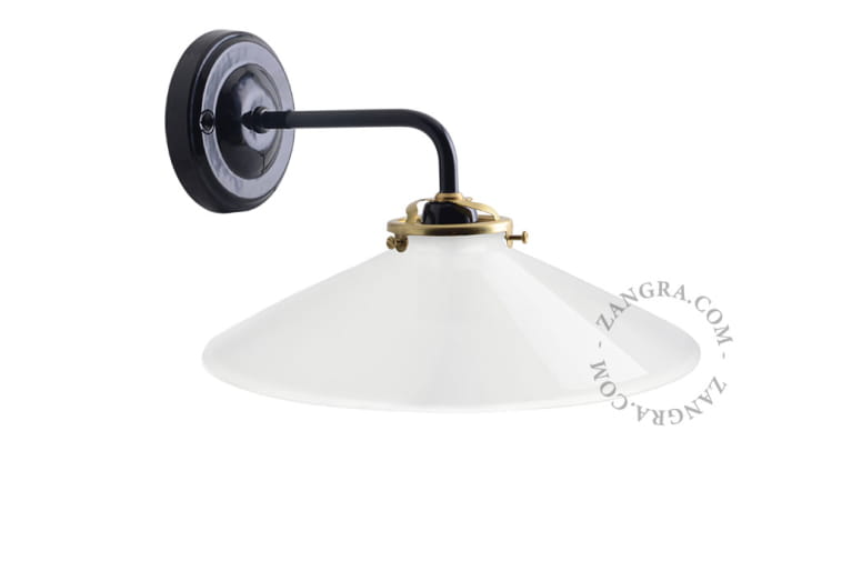 The AUDE wall lamp is a novelty from the manufacturer Zangra! The combination of opal milky glass and a black base with decorative brass elements is beautifully intertwined. A minimalist but decorative lamp that will find itself in many arrangements! No screws are supplied as the type of screw depends on the material of the wall or ceiling (concrete, brick, drywall, wood). Each type of surface requires a different type of screw. The light source is not included with the purchase of this lamp holder. Do not use an electric screwdriver. Do not use electric screwdrivers when assembling porcelain pieces. We recommend that you first drill a hole in the wall, insert the appropriate wall plugs and screw it with a hand screwdriver. It is recommended to exercise extreme caution during the final tightening of the screws.