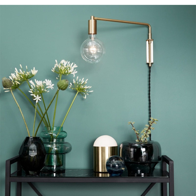 Wall Lamp LED GOLD is a minimalist wall lamp made of metal. The LED GOLD is gold-plated and ends with a twisted-on cord with a switch. The supplement is a round light bulb.