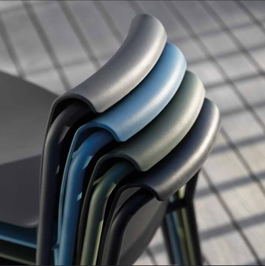 NAMI stands for wave and highlights the organic expression of this elegant garden chair. The design is based on the forces and lines of nature and finds its natural place outside in wind and weather. The NAMI chair consists of a powder coated steel frame with a beautifully molded plastic shell.