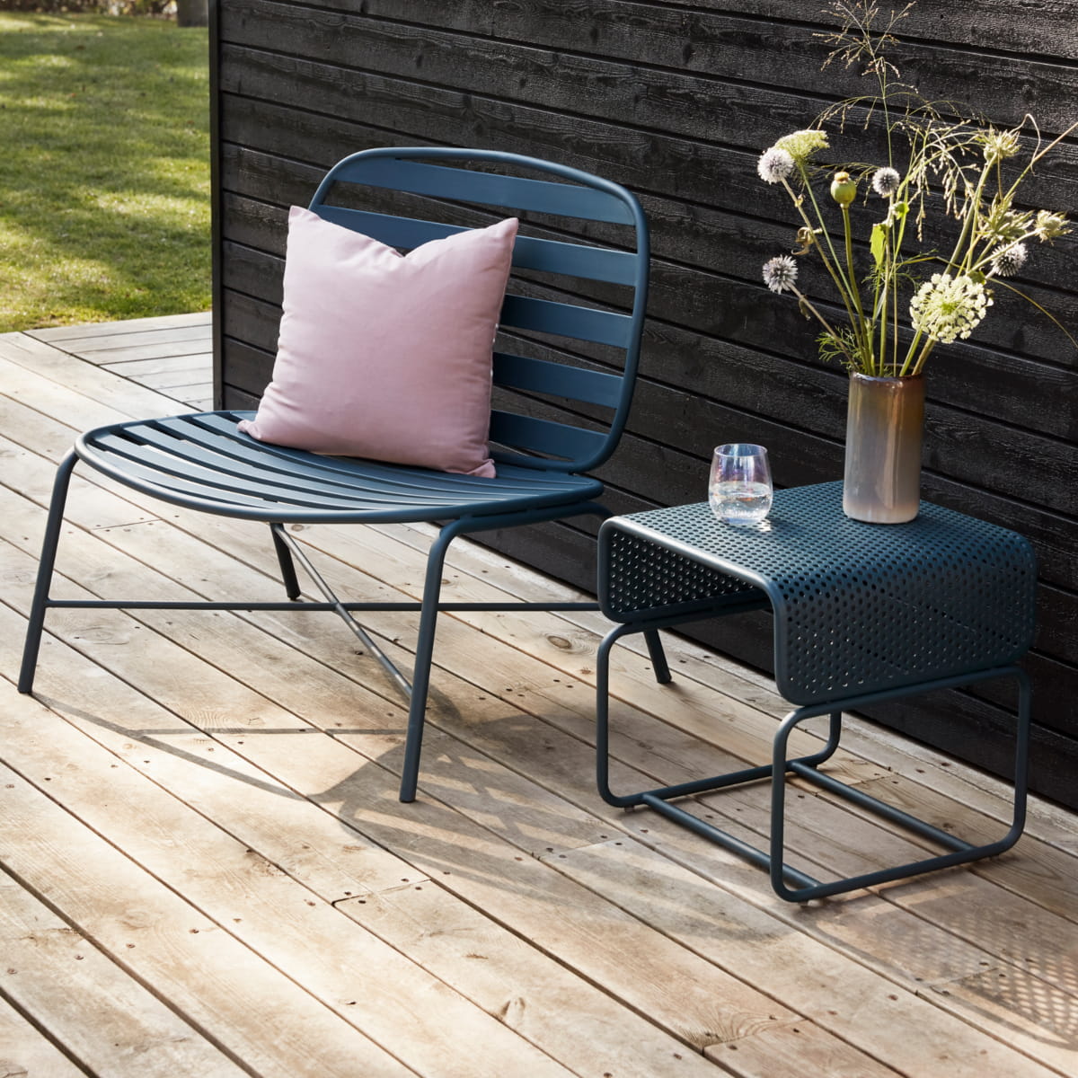 From now on you can enjoy the sun on your terrace thanks to the Hübsch garden furniture. The table with which you can have the most important things at hand is called OUT. Put a cup of good coffee and a favorite book on it and enjoy the fresh air without unnecessary difficulties.