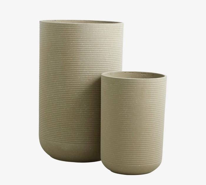 Da Pflanzen heutzutage so beliebt sind, werden auch Töpfe benötigt, um der Pflanze ein ausdrucksstärkeres Aussehen zu verleihen. Diese Pflanzgefäße sind elegant mit einem gerippten Muster gestaltet und in 2 Größen erhältlich. GRANITO kann draußen aufgestellt werden, wir empfehlen jedoch, Frost im Winter zu vermeiden. Das Set hat unten ein Loch zum Ablassen von Wasser.