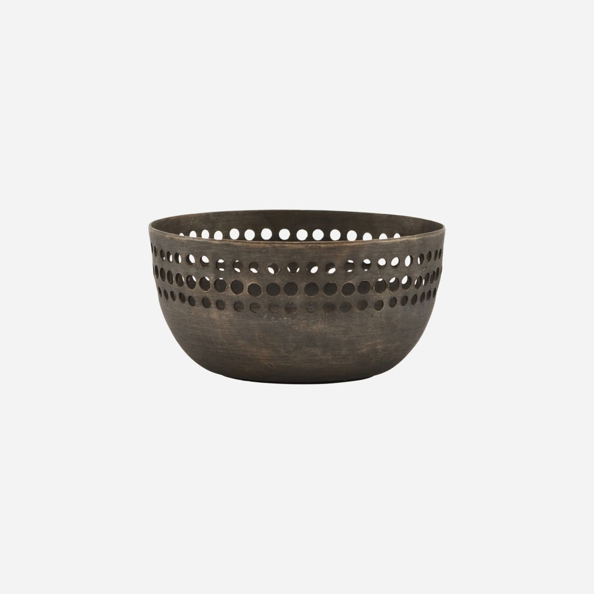 Eine kleine Schale für Snacks oder zur Aufbewahrung von Alltagsgegenständen. House Doctor hat Perfo mit kleinen Löchern entworfen, die dem Stahlmaterial Leichtigkeit und Weiblichkeit in Ihrem Zuhause verleihen. Aus Messing gefertigt und in einem matten braunen Farbton gehalten, ist es äußerst vielseitig und zeitlos in seinem Design. Herstellercode: 205850933