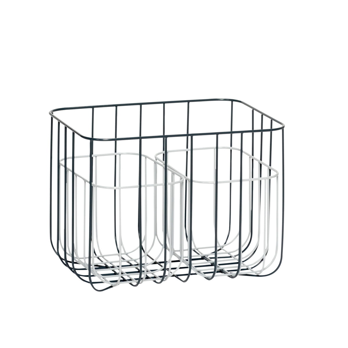 Zestaw 3 metalowych koszy SQUARE. Większy kosz w kolorze czarnym mieści dwa mniejsze w kolorze szarym.