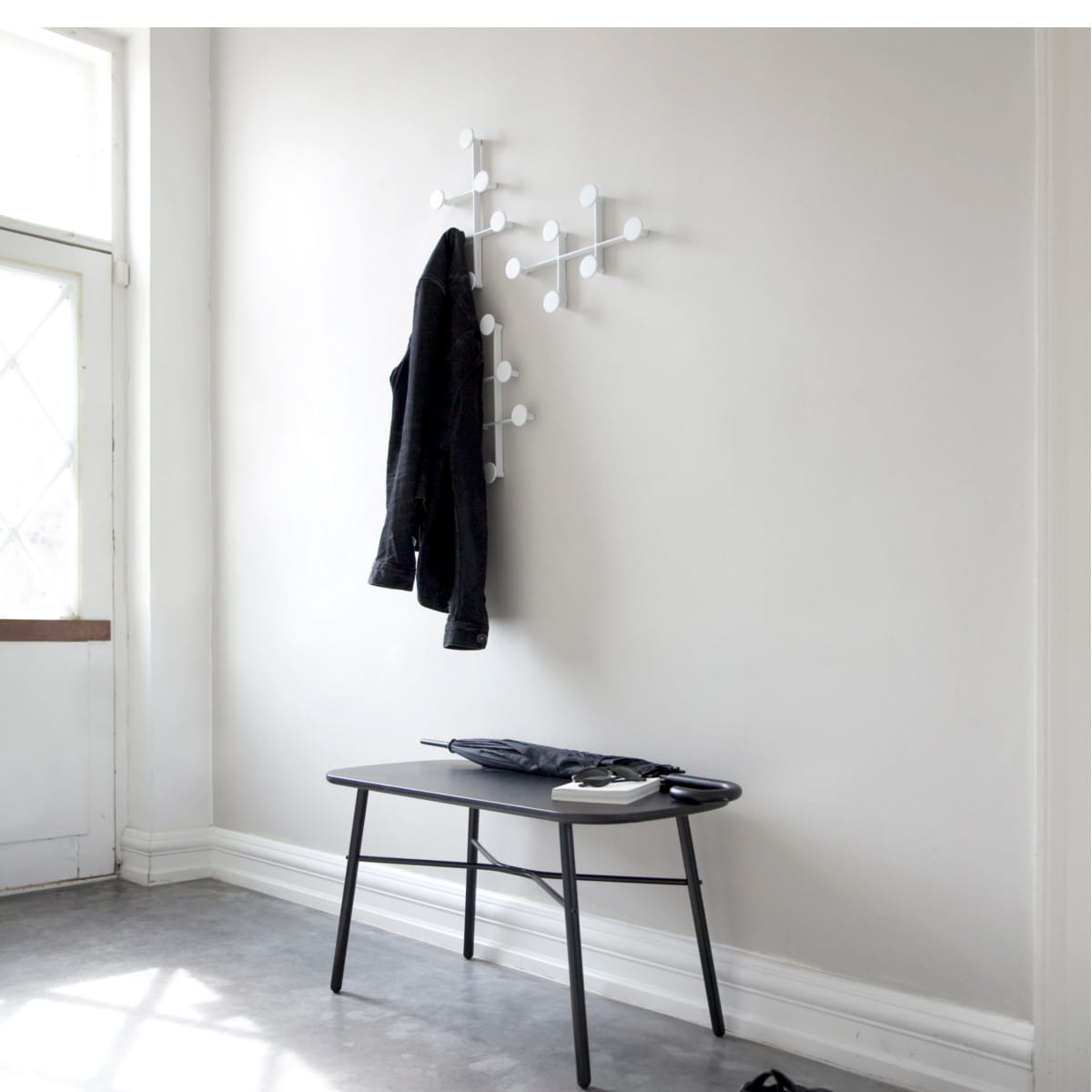 Prosty wieszak na płaszcz, odzież lub śmieszne czapki. Wieszak na ubrania Afteroom Coat Hanger jest prostotą samą w sobie. Łatwy w montażu, a także - w celu podkreślenia czystej estetyki - wszystkie śruby zostały ukryte wewnątrz ramy.