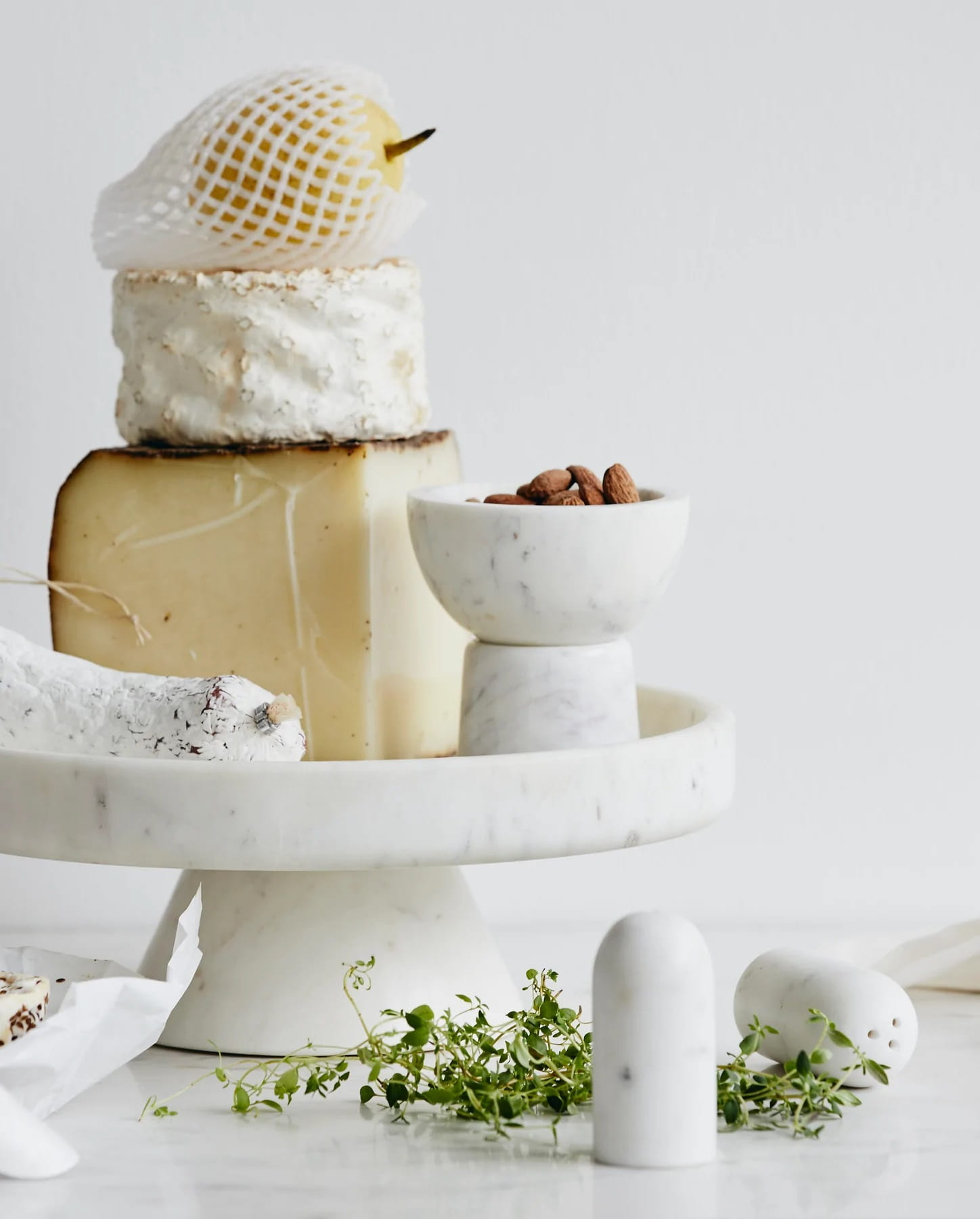 Elegantní sada soli a pepře z bílého mramoru. Hodí se k našim dalším doplňkům k bílému mramorovému stolu.