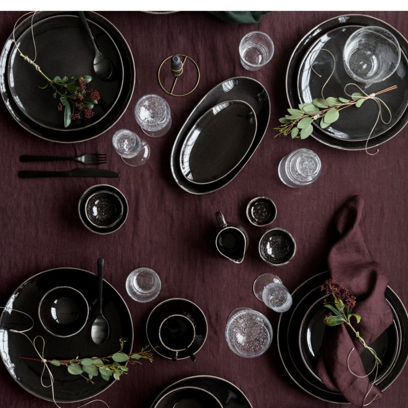 Piękna, najnowsza kolekcja ceramiki NORDIC COAL marki Broste Copenhagen. Produkty zostały wykonane z kamionki wykończonej w kolorze czarnym. Naczynia nadają pomieszczeniu elegancji. Chłodna tonacja naczyń wykończona została nieregularnym brzegiem w kolorze jasnego brązu.