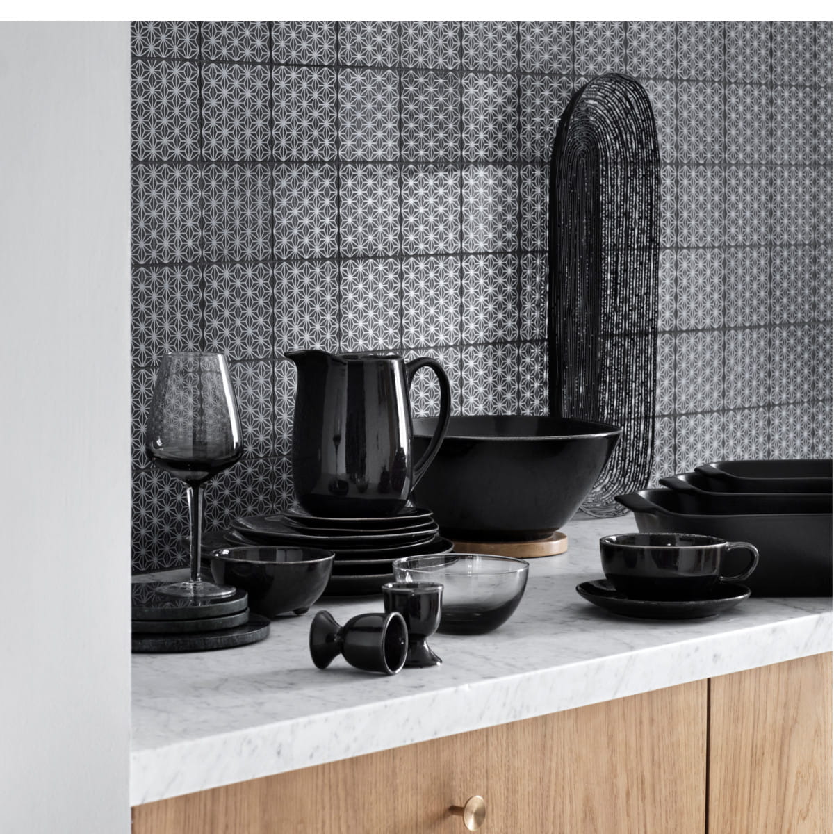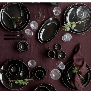 Beautiful, newest collection of NORDIC COAL ceramics by Broste Copenhagen. The products are made of black stoneware. The dishes give the room elegance. The cool tones of the dishes are finished with an irregular rim in a light brown color.
