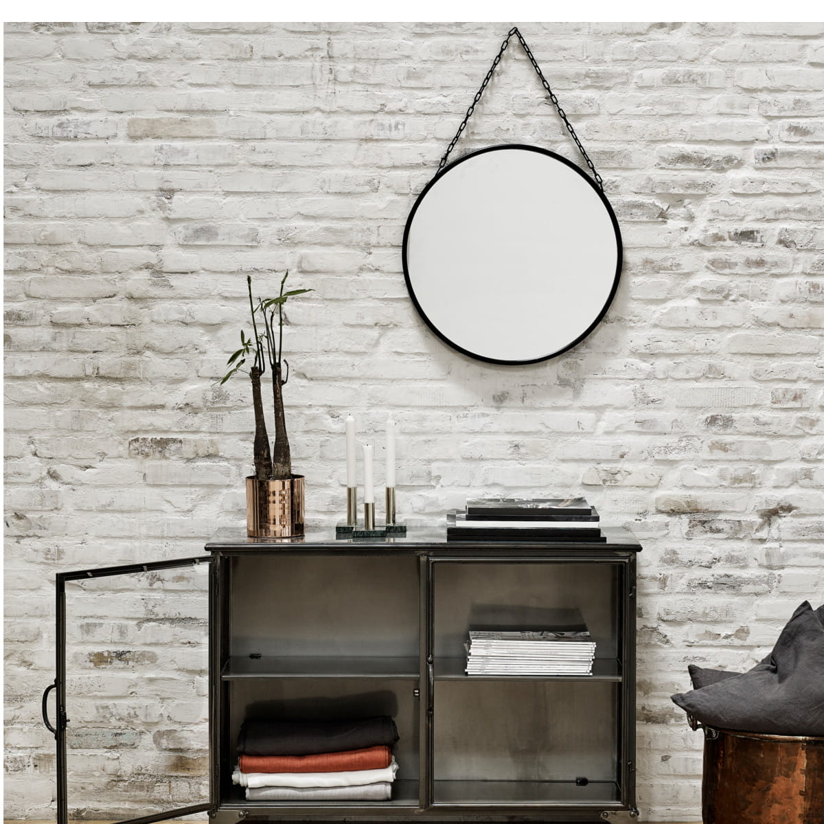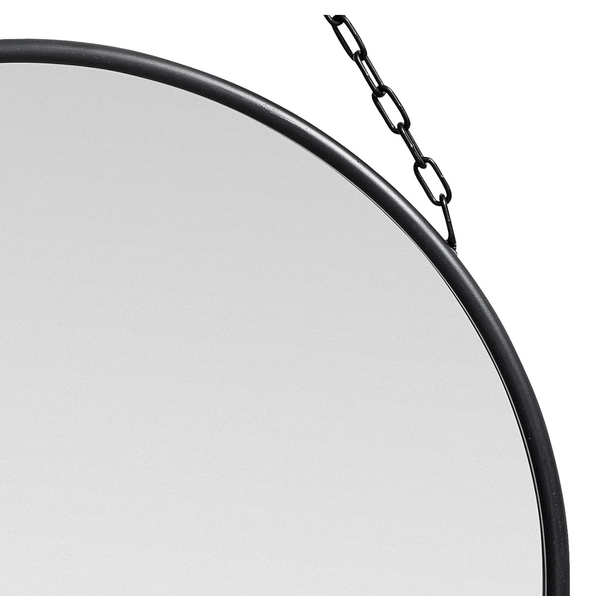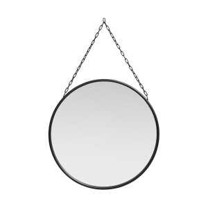 Lustro DOWNTOWN zostało stworzone przez markę NORDAL. Okrągła szklana powierzchnia lustra został oprawiona żelazem. Czarną ramę scalono z żelaznym łańcuszkiem, który stanowi element zawieszenia lustra na ścianie. Dzięki temu całość stanowi ciekawy i oryginalny detal wnętrza.