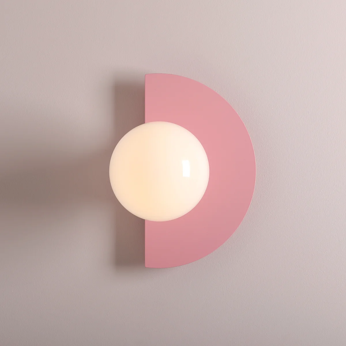 A semicircular disk is the background for an opal lampshade with a diameter of 14 cm.