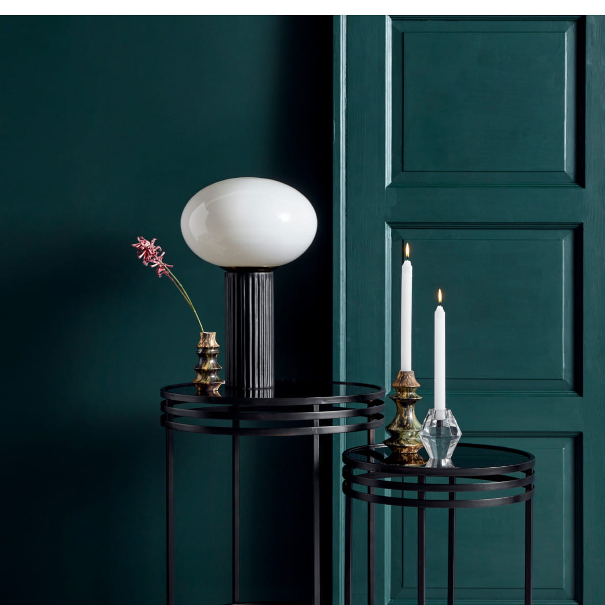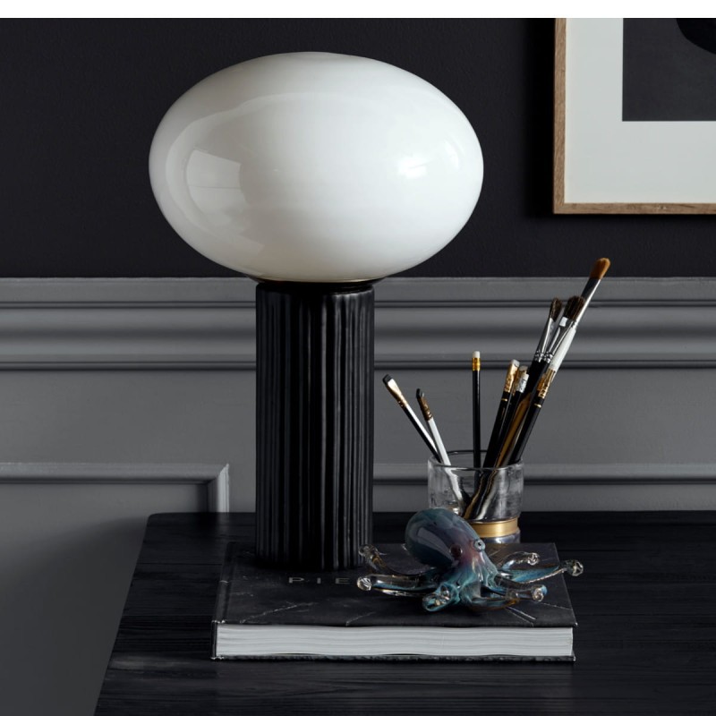 An elegant lamp can change the whole arrangement. It is worth choosing a model that, in addition to bringing light into the room, will also be a decorative element. The OPAL lamp from the Danish manufacturer Nordal tempts with elegance and attention to every detail. A milky shade mounted on a ceramic base resembling an antique column adds character to the lamp.