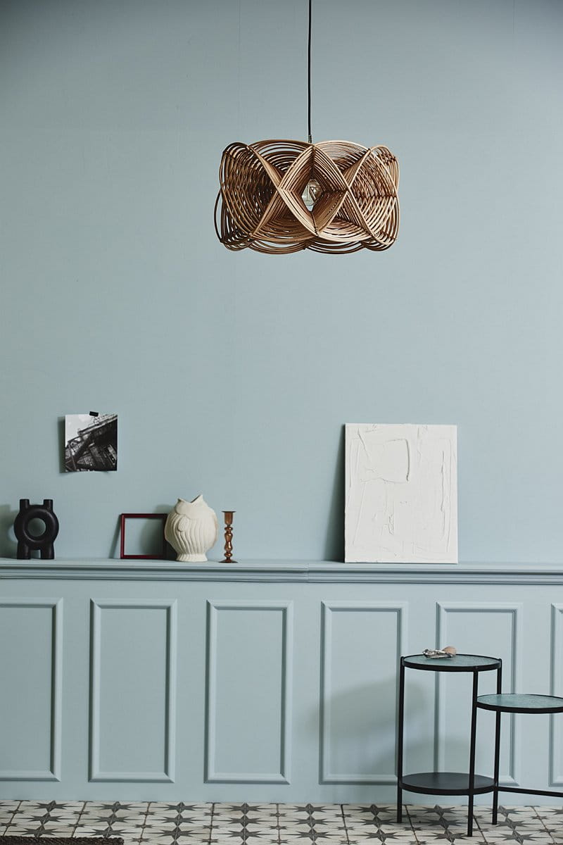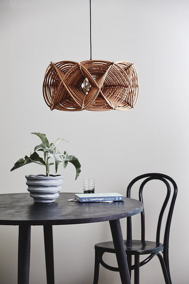 Replace the lampshade with the unique rattan frame of this METIS pendant lamp from Nordal. Made of woven wooden rattan in a light, natural finish to match many décor. The lampshade resembles a kaleidoscope, surrounding a single bulb, which is located in the center of a slender, round form. METIS is powered by a cable, which as well as the socket are not included.