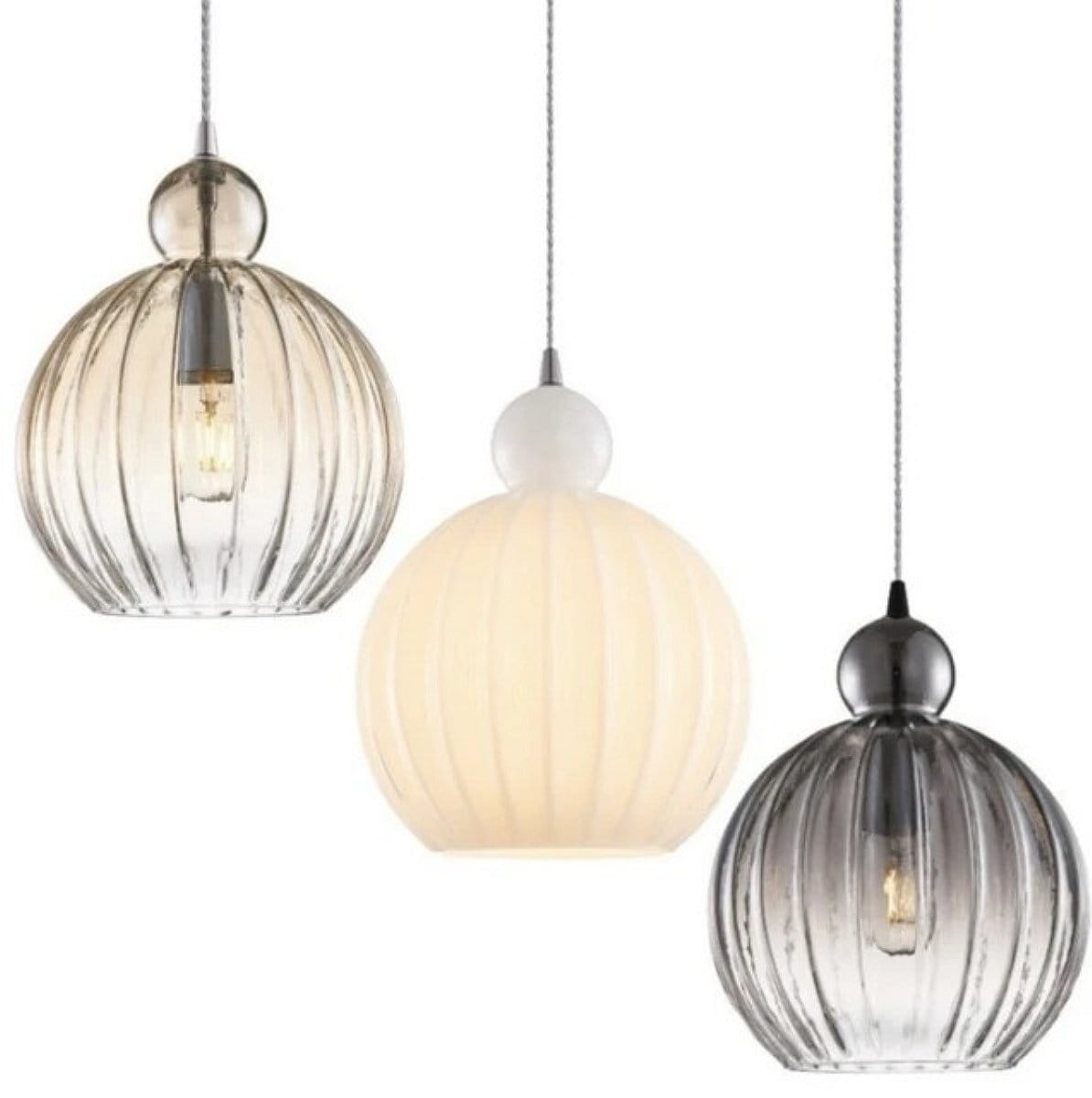The glass Ball Ball lamp by Halo Design has soft arches for a nice look, designed with vertical lines cast in the glass. The lamp is available in several sizes and colors.