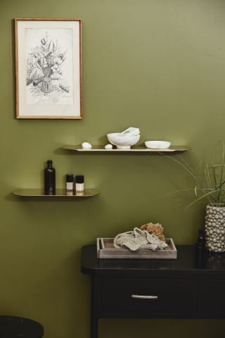 FANOE S - jest to mała i elegancka złota półka. Delikatna, nadająca charakteru FANOE od Nordal. Umieść ją w przedpokoju na telefon i klucze lub przy łóżku na książkę albo zegarek. W stylowej łazience również sprawdzi się GENIALNIE. Pomysłów jest mnóstwo, wykorzystaj ją w swoim mieszkaniu.
