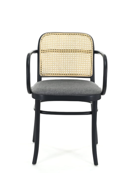 Fotel B-811/1 z wyplatanym oparciem to idealna propozycja do stylowego mieszkania i eleganckiej restauracji. Wyplatane, trzcinowe oparcie idealnie komponuje się z twardym siedziskiem.