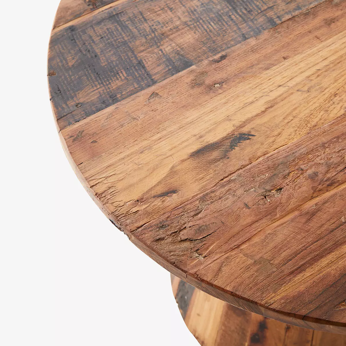 Drewniane meble z recyklingu o surowym uroku i wyjątkowej charyzmie nie są ani zwyczajne, ani dla wszystkich, ale jeśli jesteś całkowicie entuzjastycznie. Stół i wspaniały ponadczasowy nowoczesny design bardzo indywidualna nuta. Praktycznym efektem ubocznym okrągłego stolika z postumentem jest to, że dzięki swojemu kształtowi zapewnia wygodną przestrzeń na nogi zarówno podczas wyciągania stóp, jak i podczas chodzenia.