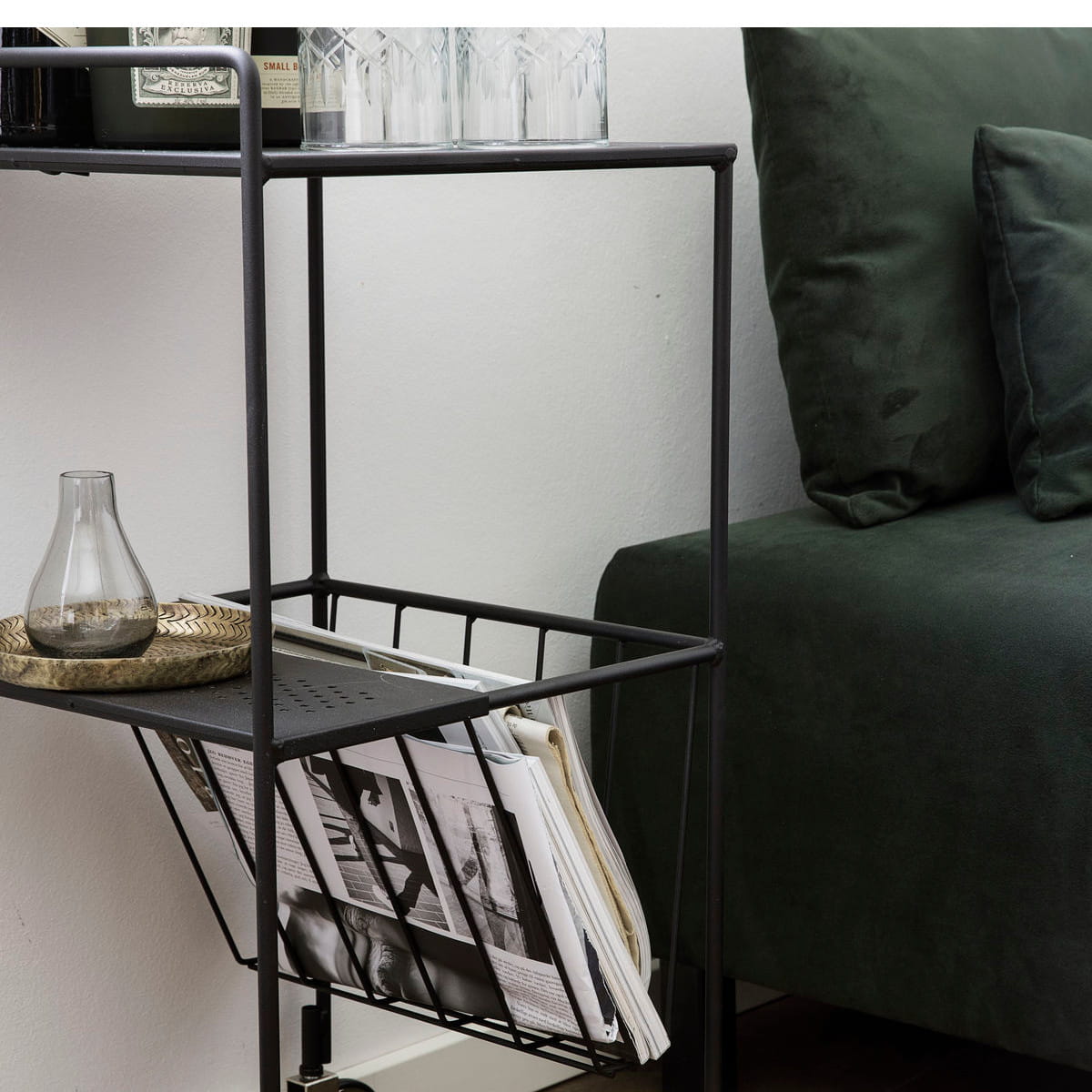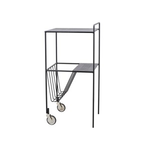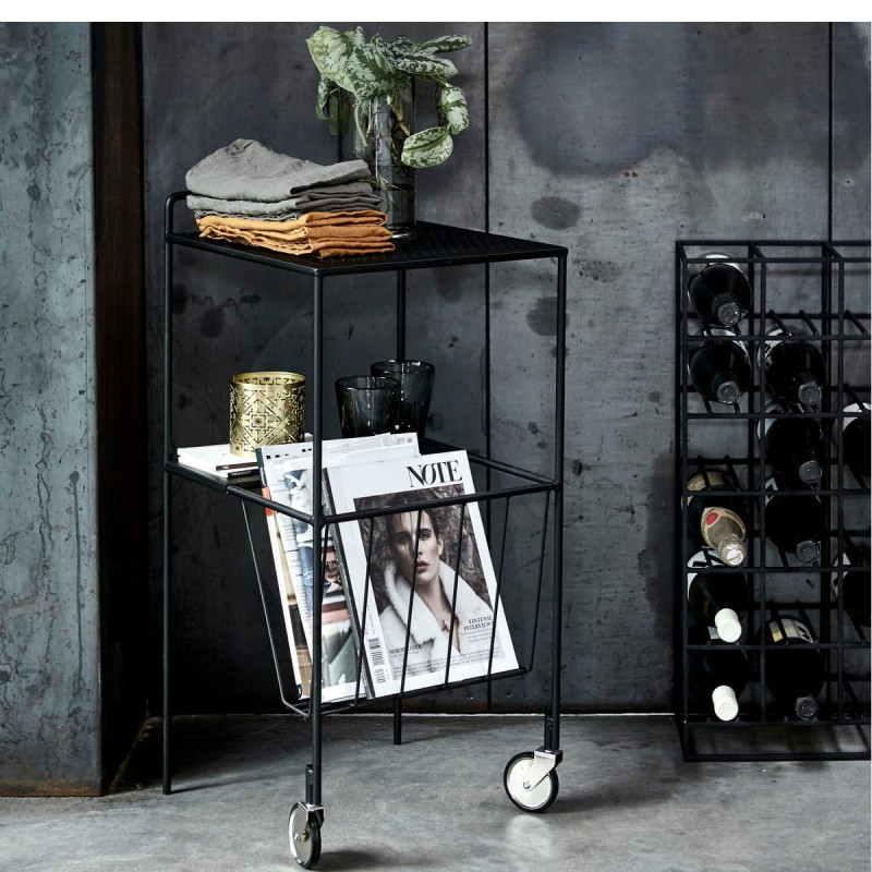 Ten piękny wózek pomocniczy od House Doctor ma prosty i stylowy wygląd, dzięki czemu nadaje się do każdego rodzaju domu. Wózek - lub stół barowy - nazywa się USE i jest wykonany ze stali z warstwą matowego czarnego lakieru. Można go wykorzystać jako stolik nocny w sypialni, stolik do fotela w salonie lub jako stolik do przechowywania towarów w kuchni. USE jest wielofunkcyjnym meblem, dzięki czemu można go używać prawie w dowolnym pomieszczeniu w domu.