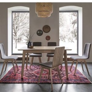 Stół rozkładany A-1703 wyróżniający się modną linią i oryginalnym wzornictwem. Charakterystyczne, zwężające się ku dołowi nogi, nadają mu nowoczesną formę i elegancki styl. Stół zaprojektował STROOG Andrzej Lęckoś.