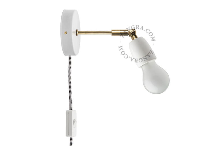 Lampa została zaprojektowana i wykonana ręcznie w Belgii przez firmę Zangra.Ta lampa z wyłącznikiem jest dostarczana z tekstylnym kablem o długości 300 cm, białą wtyczką i przełącznikiem. Odległość między przełącznikiem a pokrywą ścienną wynosi 45 cm. Nasadka obraca się o 90 stopni na mosiężnym łączniku.