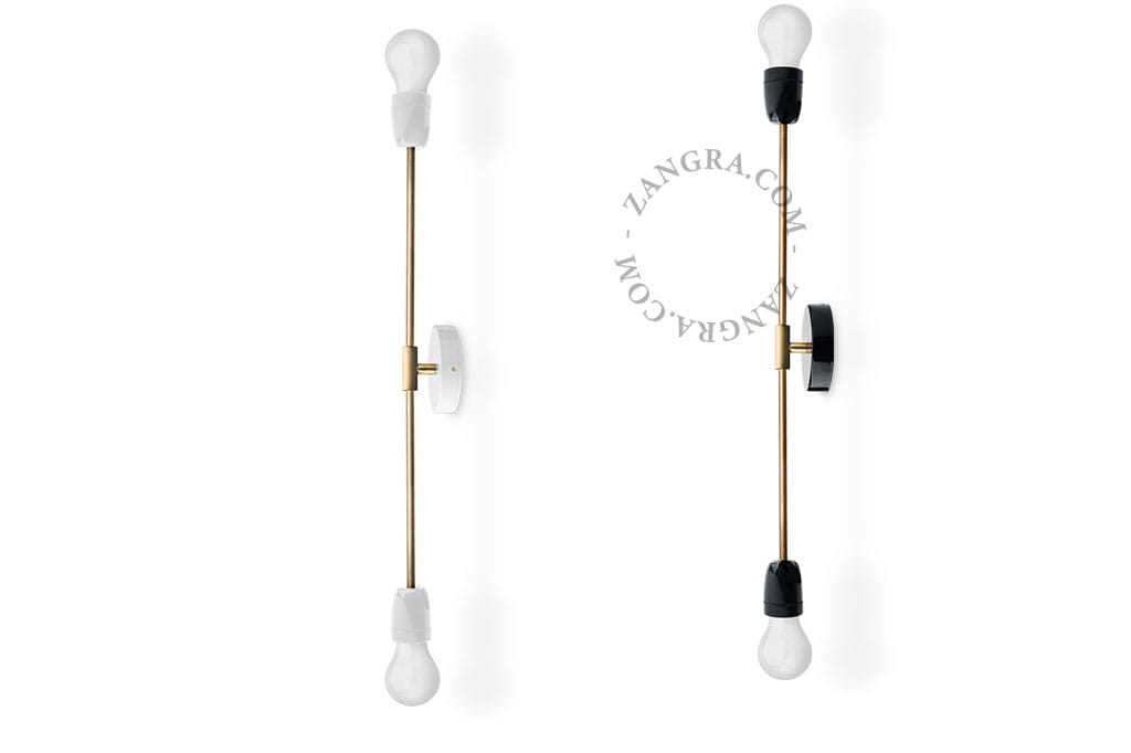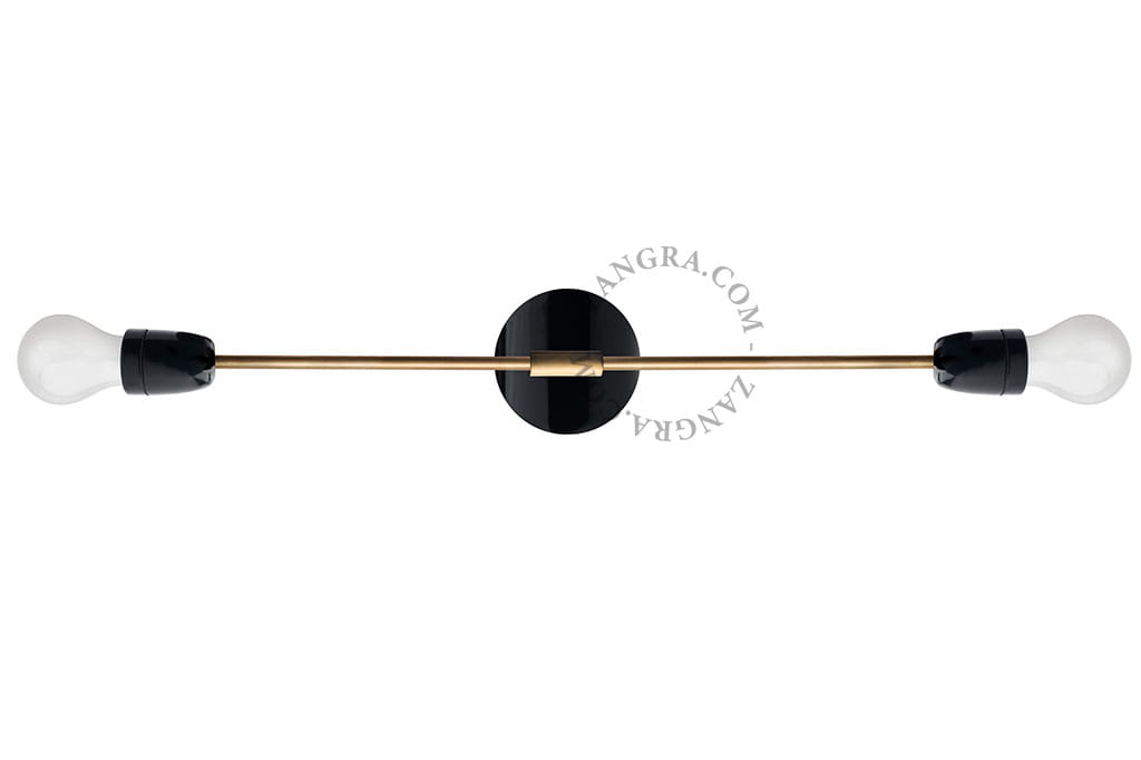 Porcelanowy kinkiet, który składa się z dwóch prostych ramion. Połączenie czarnej porcelany z ramionami w kolorze mosiądzu niezwykle eleganckie połączenie. Kinkiet nadaje się doskonale na korytarz, klatkę schodową jak i również do sypialni gdzie wieczory spędzamy z ulubioną książką. Minimalizm, piękno i praktyczność w jednym przedmiocie.
