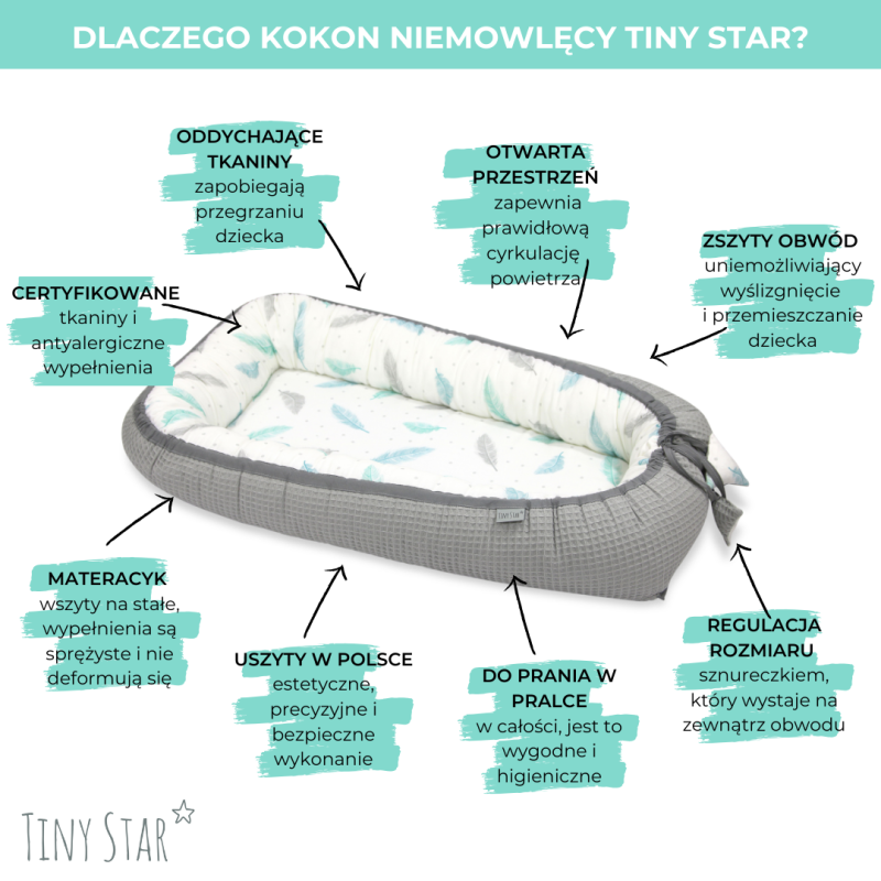 Bamboo cocoon for babies Tiny Star is a multifunctional product that facilitates daily care of the baby. Its possibilities and versatility of use conquer the hearts of mothers all over the world.