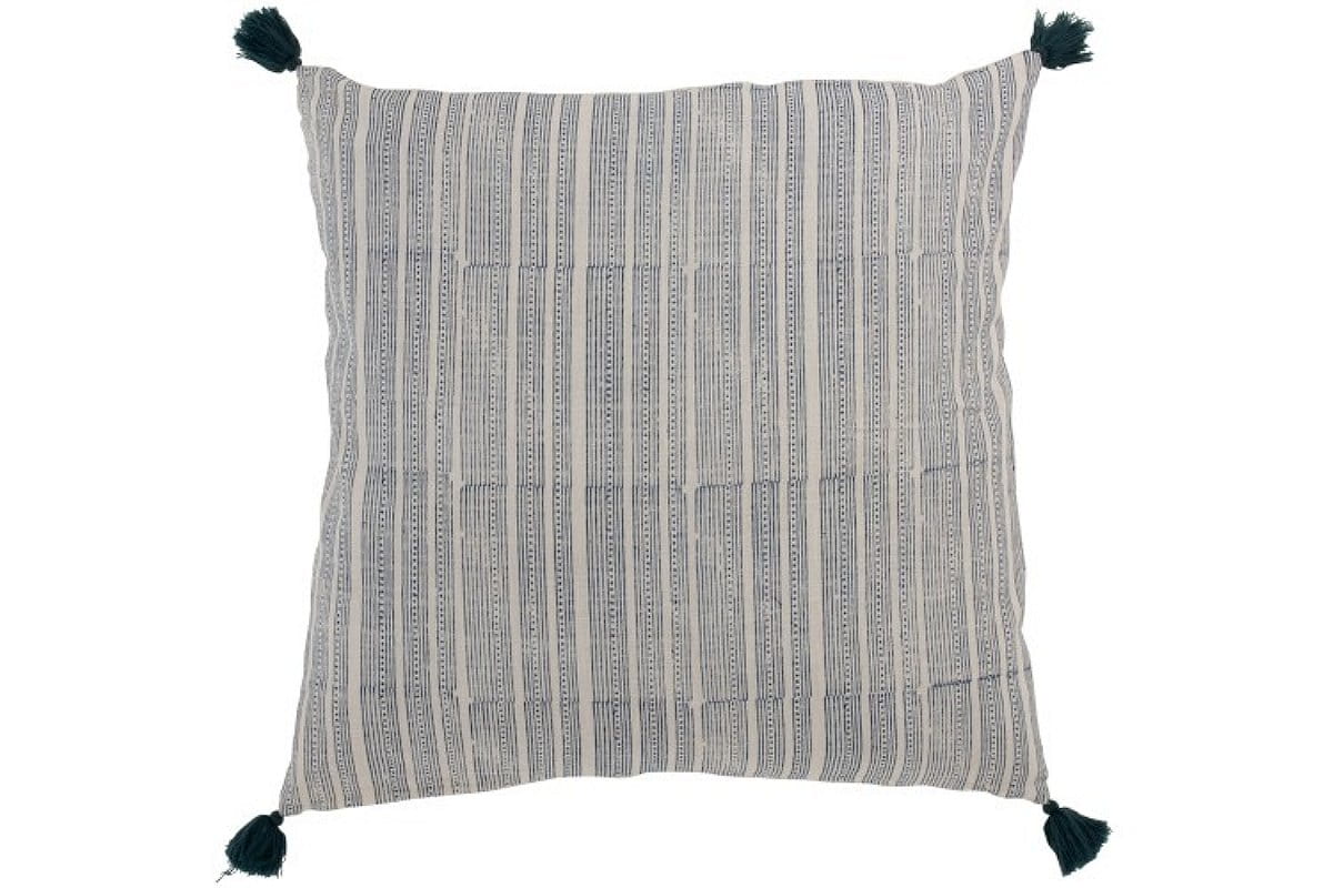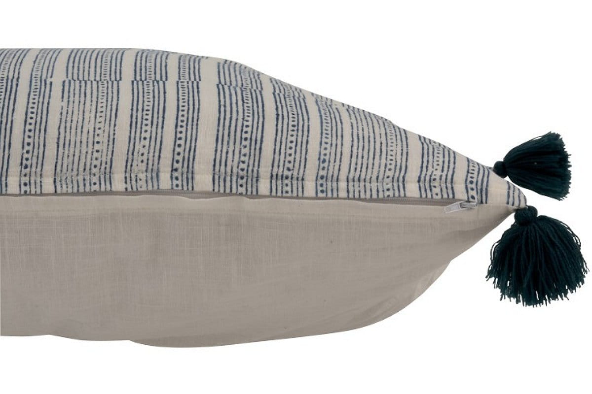 Poduszka z frędzlami AZTEC od Jolipa w niebieskie paski z nutą złamanej bieli jest zapinana na zamek błyskawiczny w celu łatwego usunięcia. Zrelaksuj się w wyjątkowym stylu, dzięki tej poduszce, wykonanej z miękkiej dzianiny, która dodaje ciekawości i tekstury w każde wnętrze.