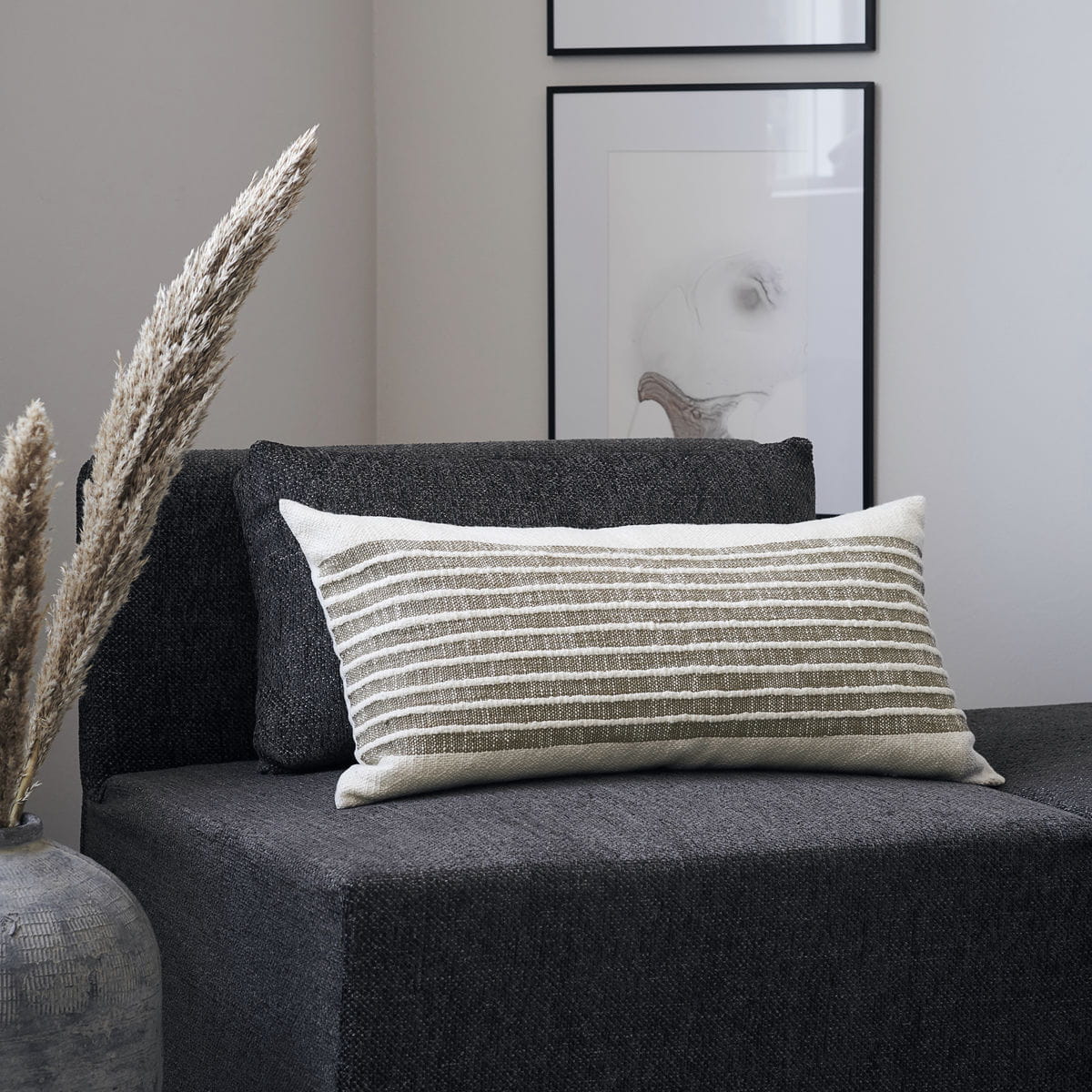 House Doctor's YARN pillowcase is made of thick cotton weave. Delicate mustard-coloured stripes enrich the pillow's design and bring an interesting but calm look to the room. The back of the pillow is simple and soft cotton.