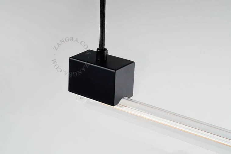 Černá lineární závěsná lampa BRUNO LED žárovka 100 cm - průhledné sklo - Zangra