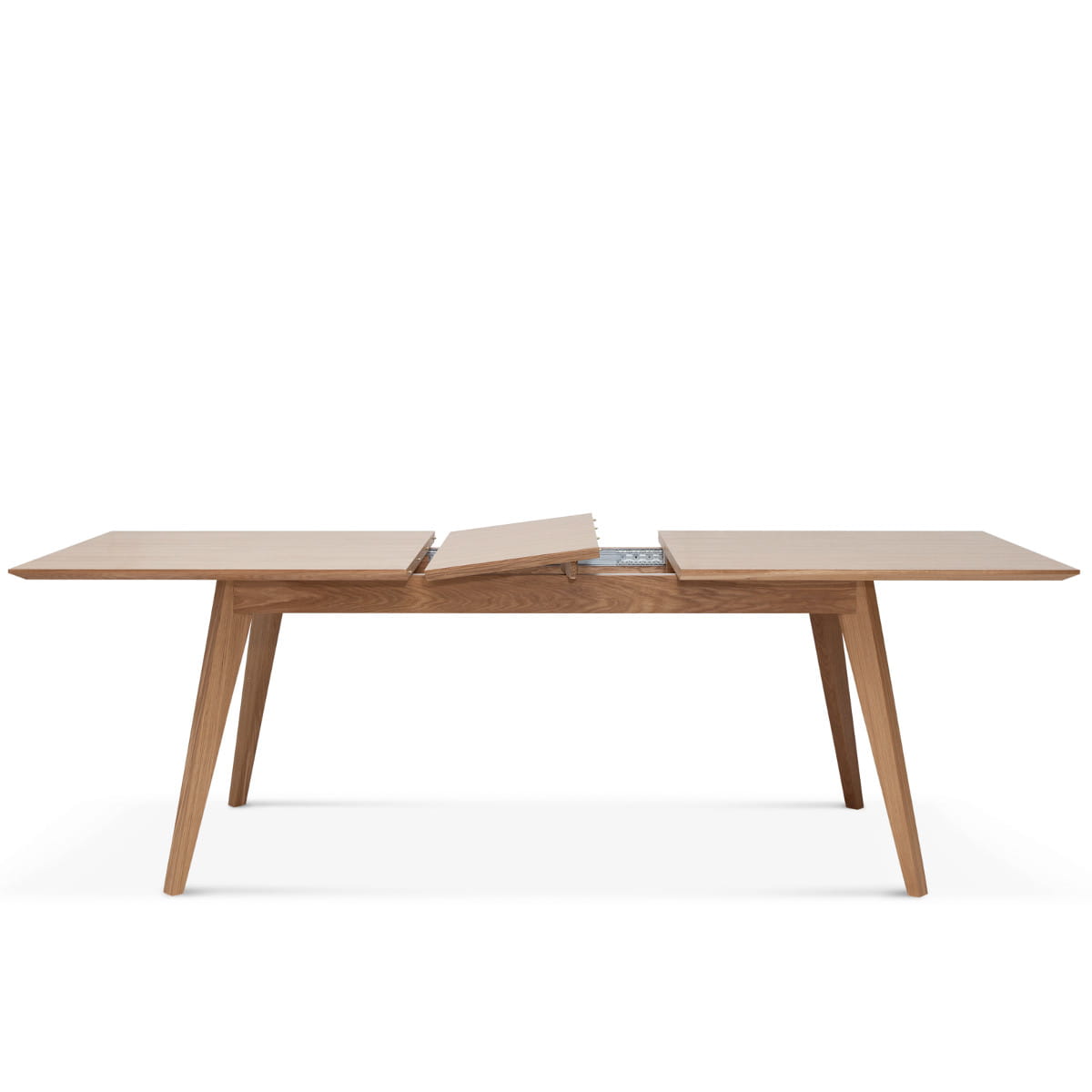 Folding table A-1403 distinguished by a fashionable line and original design. The characteristic legs, narrowing downwards, give a modern form and elegant style. The table was designed by STROOG Andrzej Lęckoś.